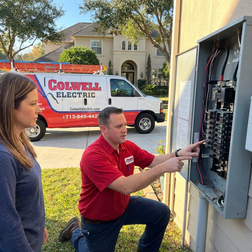 When your electrical panel starts showing signs of trouble, you need answers fast. Colwell Electric provides expert electrical panel repair, installation, and replacement throughout Houston. Whether you’re dealing with a failing breaker, a warm panel, an outdated fuse box, or you need more capacity for today’s appliances, our licensed electricians will inspect the system, identify the issue, and recommend the right solution for your home. Colwell emphasizes safe, NEC-code-compliant work and has served Houston homeowners since 1990.